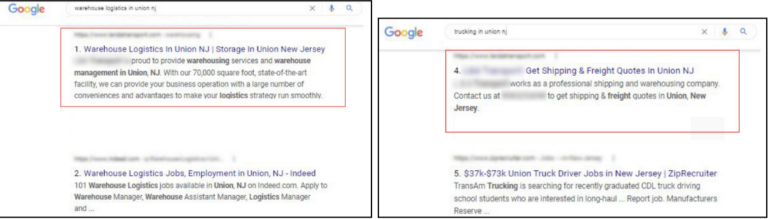 • “Warehouse logistics in Union NJ” – #1 on Google