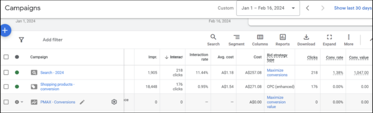 The newly built Search campaign outperformed the recycled Shopping and PMAX campaigns immediately. Within the first week, Queensland Mirrors began seeing real sales coming directly from the ads.